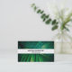 Visitenkarten mit einem engen Foto eines grünen tropischen Blattes mit einigen lebhaften Palmenfronten. Ein Rechteck, das oben mit dem Text übereinander liegt.