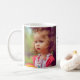 Diese weiße Weihnachtskaffee-Tasse besticht durch einen Santa-Claus, der sich am Feuer auf der Rückseite und einem niedlichen Foto Ihrer Tochter auf der Vorderseite ruht. Um das Foto und den Text zu ändern, klicken Sie auf die Schaltfläche Personalisieren. Dieses Design enthält A.I.
