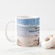 Foto des blauen Ozeans mit der Weihnachtsblase Kaffeetasse