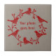 Scandi Vogel und Rose angesagte Kranzpapier Stil Design. Festlich rot auf einem neutralen Hintergrund, Fügen Sie Ihr eigenes Foto, um anzupassen.