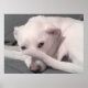 Foto des weißen Hundes mit Schwanz auf Gesichtshau Poster