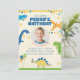Mit dieser individuellen Einladung laden wir Sie zu einer lustigen Geburtstagsfeier zum Thema Dinosaurier ein! Dieses fröhliche und lebendige Design besticht durch einen freundlichen Foto-Upload-Bereich, umgeben von spielerischen Cartoon-Dinosauriern und festlichen Elementen wie Ballons und Bbunting. Die Karte eignet sich ideal, um den besonderen Tag Ihres kleinen Kindes zu feiern. Sie bietet Platz, um sich mit dem Namen, dem Alter und den Party Ihres Kindes zu personalisieren. Nehmen Sie am [Party-Ort] teil, am [Party-Datum] bei [Party-Adresse], [Party-Uhrzeit]. Lassen Sie Ihre Kindergeburtstagsfeier unvergesslich mit dieser bezaubernden und personalisierten Einladung werden! #DinoParty #BirthdayEinladung #KidsGeburtstag #DinoThema #PersonalizedEinladung #BirthdayFeiern #PartyEinladungen #KidsPartyIdeen #FunPartyThemes #FotoEinladungen