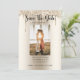 Ein Foto Save the Date für Hochzeiten. Fügen Sie Ihr Foto und Ihre Namen und Hochzeitsdatum zusammen mit der Stadt und Staat. Hintergrund ist der trendige tropfende Glitzer.