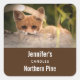 Seife- oder Kerzenaufkleber mit einem Lieblingsfoto mit einem kleinen orangefarbenen Fuchs, der hinter einem Ausloggen in der Wildnis auf Sie pinkelt.