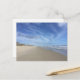 Die Kamera zeigte nach Norden, als dieses Foto auf der Postkarte aufgenommen wurde, bei Ebbe am Ufer des Atlantiks mit einem Sandstrand und einer grasbewachsenen Düne am Anfang der Küste. Blaue Wolken tauchten im letzten Bild auf.
