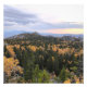 Foto eines bergigen Herbstwaldes, Berge, Kiefernbäume und hellgelbe Bäume