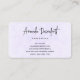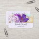 Visitenkarten mit einem hübschen Foto eines dunklen lila Crocus Set in einem Glasgefäß. Im Hintergrund ist eine leichte lila Blüte zu sehen.