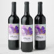 Weinetiketten mit einem hübschen Foto eines dunklen lila Crocus-Set in einem Glasgefäß. Im Hintergrund ist eine leichte lila Blüte zu sehen.