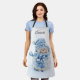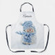 Eine Schürze mit einem niedlichen Foto eines kleinen Schneemanns. Stehend im Winter mit Schneefall. Dieser niedliche kleine Typ ist in blau gestricktem Hut und Schal gekleidet.