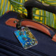 Foto eines tropischen Fisches auf einem Gepäckanhänger