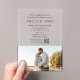 Feiern Sie den Anfang Ihres Lebens mit dieser atemberaubenden Acrylhochzeit-Einladung, die eine moderne und luxuriöse Touch zu Ihrem besonderen Tag bringen soll. Oben verbindet der Text elegante Kalligraphie mit einem klassischen Serif-Schriftart und schafft so eine perfekte Balance aus Eleganz und Charme. Fügen Sie unten Ihr Lieblings-Foto hinzu, um diese Einladung zu personalisieren und sie einzigartig zu machen. Diese Einladung aus elegantem Acryl besticht durch zeitgenössische Eleganz und eignet sich ideal für moderne und minimalistische Hochzeiten. Das zeitlose Design und das erstklassige Finish Set für ein Fest voller Liebe, Freude und unvergessliche Erinnerungen.