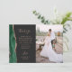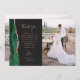 Schicken Sie Ihrer Familie und Ihren Freunden einen besonderen Hochzeitsdanken mit diesen maßgeschneiderten Fotokarten. Auf der links, die Worte "danke" erscheinen in eleganten Rose-farbenen Handschrift Schrift Typografie auf einem schiefen schwarzen Hintergrund über eine kurze, bearbeitbare Botschaft des Dankes an Ihre Hochzeitsgäste in Copperplate Schriftart, mit Ihren Namen unten. Ein smaragdgrüner Aquarellrand bestickt mit Imitaten Rose Gold Glitzer schmückt die links Kante. Die Rückseite bietet Platz für ein zweites, horizontales Foto.