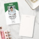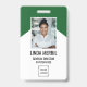 Erstellen Sie ein individuelles Mitarbeiter-ID-Abzeichen mit einem beruflichen Foto, Ihrem Firmenlogo und drei personalisierten Textzeilen. Dieses moderne vertikale Abzeichen zeichnet sich durch einen grünen und weißen Hintergrund aus, der Eleganz und Einfachheit verbindet - ideal für Unternehmen, Schulen, Gesundheitswesen und Unternehmen. Display Schlüsseldetails wie Name, Jobtitel und Abteilung klar und stilvoll. Ideal für die Identifizierung von Mitarbeitern, Sicherheit am Arbeitsplatz und Markenkonsistenz. Dauerhaft, beruflich und für den Alltag konzipiert. Ideal für Personalausweis, Arbeitsplatzzugang und Markenpräsentation.