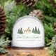 Ein Weihnachtsdesign mit dem Thema Waldtiere. Es gibt ein Paar Hirsche, einen Hirsch und eine Hirschkuh, auf dem weißen Schnee-Hintergrund, zwischen Gruppen von grünen Tannen mit Schnee an den Seiten. Der Text "First Christmas Together" ist in grüner Handschrift, mit dem Namen und dem Jahr in kleineren grünen Buchstaben darunter.