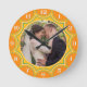 Foto Familie Modernes Orange Sunburst Personalisie Runde Wanduhr