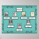 Auf diesem Poster steht ein dreigeschossiger Foto-Stammbaum auf aquamarinem Hintergrund. Personalisieren Sie mit den Fotos und Namen Ihrer Vorfahren. Das Poster ist mit einem schmiedeeisernen Aussehen umgeben. Wenn Sie Hilfe beim Personalisieren benötigen, kontaktieren Sie mich bitte.