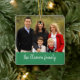 Weihnachtsschmuck aus dem Foto, vollständig editierbar, mit grünem geschmolzenen Rahmen mit Familienname und Vorder-/Rückseite-Bildern. Einfache Anpassung doppelseitiger Ornamente mit Ihrem Nachnamen, Lieblingsbildern und Farben (skalierte Grenze und Text).