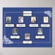 Auf diesem Poster steht ein dreigeschossiger Foto-Stammbaum auf einem blauen Hintergrund. Personalisieren Sie mit den Fotos und Namen Ihrer Vorfahren. Das Plakat grenzt an weiße Vintage Rose-Kunstsammlungen in zwei Ecken der Grenze. Wenn Sie Hilfe beim Personalisieren benötigen, kontaktieren Sie mich bitte.