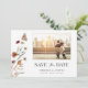 Foto Floral Save the Date. Dieses stilvolle und elegante Hochzeitsfest Save the Date besticht durch einen wunderschönen handbemalten Schmetterling in Aquarelltönen und Wildblumen, die als hübsches Beisammensbukett arrangiert werden. Auf der Rückseite finden Sie ein Monogramm und einen Text zum Hinzufügen Ihrer Hochzeitswebsite, oder entfernen Sie es einfach, wenn Sie es vorziehen. Finden Sie passende Artikel in der White Boho Wildblume Wedding Collection.