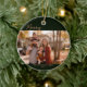 Feiern Sie die Urlaubssaison mit diesem eleganten Foto Weihnachtsschmuck. Dieses Design mit einem modernen dunkelgrünen Hintergrund und stilvoller Schriftzeichen-Kalligraphie, die Frohe Weihnachten ausliest, hebt Ihr Lieblingsstipendium in der Foto-Mitte hervor. Personalisieren Sie sich mit Ihrem Familiennamen und Jahr am unteren Ende, es ist der perfekte Weg, Liebe, Freude und feierliche Grüße an Familie und Freunde zu verbreiten. Passen Sie die Nachricht auf der Rückseite an und fügen Sie Familiennamen hinzu. Eine Tradition, jedes Jahr ein neues Foto zu haben.