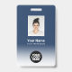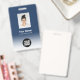 Dieses Abzeichen für den benutzerdefinierten Mitarbeiternamen lässt sich einfach mit Foto, Bar scannen und dem Firmenlogo mit einem weißen Farbverlauf in der Hintergrundfarbe personalisieren. Ein einfaches Business-Design in marineblau-weißer Farbe, das in Vorder- und Rückengrößen vollständig anpassbar ist, serifenlose, einfache und moderne Schriftart und ein berufliches und klares Aussehen. Erhältlich mit Lanyard, Metallklammer oder mit Retraktikett. Keine Mindestbestellung.