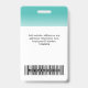 Dieses Abzeichen für den benutzerdefinierten Mitarbeiternamen lässt sich einfach mit Foto, Bar scannen und dem Firmenlogo mit einem weißen Farbverlauf in der Hintergrundfarbe personalisieren. Ein einfacher personalisierter Name für die Sicherheitshinweise kennzeichnet das Business-Design in farbenfrohen türkisblauen und weißen Farbtönen, die sich in Vorder- und Rücken-Größen, serifenlosen Schriftart und einem beruflichen und klaren Aussehen vollständig anpassen lassen. Die id-Abzeichen sind mit Lanyard, Metallklammer oder mit Retraktierbar erhältlich. Keine Mindestbestellung.
