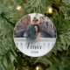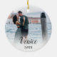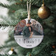 Mit diesem eleganten Ornament mit einem Foto auf beiden Seiten können Sie einen Urlaub oder einen Ausflug begehen. Personalisieren Sie Ihre eigene Beschriftung mit zwei Textzeilen, die auf jeder Seite in schwarzer Schrift auf einem weißen Overlay dargestellt sind.