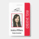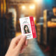 Personalisieren Sie dieses berufliche, rote Foto-Sicherheits-Abzeichen einfach mit Ihren individuellen Daten.