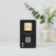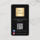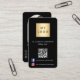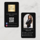 Ein klassischer schwarzer Hintergrund. Personalisieren Sie Ihr Firmenlogo, Ihr Foto, Ihren Namen, Ihren Titel und Ihre Kontaktinformationen. Fügen Sie Ihre Website url/link zum Qr-Code hinzu. Mit Facebook und Instagram Icons. Weißer Text.