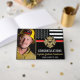 Dieses Design ist mit einer Feuerwehrflagge mit schwarz-weißen Streifen und einem dünnen roten Streifen versehen. "Glückwunsch" und das Abzeichen eines Feuerwehrmanns sitzen über dem Namen des schließend oder pensionierten Feuerwehrmanns, Leutnants oder Chefs. Feiern Sie stilvoll! Mit einem Foto des ausscheidenden Feuerwehrmanns können Sie sich noch weiter anpassen.