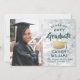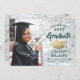 Verkünden Sie eine High School oder Uni-Abschluß und laden Sie Familie und Freunde zu feiern mit maßgeschneiderten Foto Imitats Marmor Party Einladungen. Das Bild und die Formulierung sind einfach zu personalisieren und die Farben lassen sich mit dem Zazzle Design Tool leicht ändern. Diese Vorlage ist als kombinierte Anzeigenkarte und Party Einladung, die mit allen Details Ihrer Wahl, wie Eltern Namen, besondere Ehren, Abschluss Titel, Lieblings-inspirierendes Zitat, Graduiertenplan oder neue Adresse, angepasst werden können. Das Design in Grün, Gold und Weiß ist mit einem Marmorhintergrund aus Imitaten, einer Folie aus Imitat, einer eleganten, modernen Kalligraphie, klassischer Vintager Typografie und einem beliebten Foto, wie einem Seniorenbild oder einem Bild aus der Antrittsfeier, ausgestattet. Bitte beachten Sie, dass Gold farblich gedruckt ist, nicht metallische Folie. Diese Abschluss-Karte ist eine stilvolle Möglichkeit, ein besonderes Fest anzukündigen. Herzlichen Glückwunsch an den Absolventen!