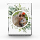 Dieser Foto-Block mit benutzerdefiniertem Text weist einen bemalten Eukalyptus in Aquarellfarben auf, grüne Blätter mit einem Kreisrahmen.