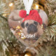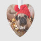 Passen Sie dieses herzförmige Ornament mit zwei wertvollen Fotos Ihres zornigen Freundes an. Ihre eigenen Bildunterschriften erscheinen vorne und hinten in weißer Hand mit Buchstabenschrift im Stil der Pinseltypografie. Angezeigt mit dem Namen des Tieres und dem Jahr.
