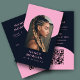 Stilvolle Visitenkarte für Haarflechten mit modernem Foto-Design, fett rosa- und marinefarbenem Farbschema und individuellem QR-Code für den sofortigen Zugriff auf Ihre Buchungsseite oder Social Media. Ideal für Hirten, Friseure, natürliche Friseure und Schönheitsprofis, die mit einer beruflichen, auffälligen Karte gewollt sind. Personalisieren Sie Ihren Namen, Ihre Saloninformationen und Ihre Kontaktdaten.