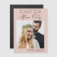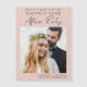 Eleganter Rosa Ankündigung Datum freihalten Magnet für einen Empfang nach Ihrer Entstehung oder kleinen Hochzeit mit Ihrem Foto und "Save the Date für unser glückliches Jenseits des Party" in einfacher Typografie und einem modernen Drehbuch. Fügen Sie unter Ihrem Foto Ihre Vornamen, das Datum und den Ort Ihres Empfangs hinzu.