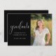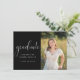 Dieser Abschluss bietet einen schwarzen Hintergrund, um Ihre Schulfarben darzustellen. Fügen Sie ein Foto hinzu, und passen Sie den Text auf der Vorder- und Rückseite an, um alle Details für Ihre Graduierungsparty einzufügen. Diese Einladung ist in verschiedenen Farben erhältlich.