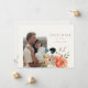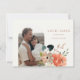 Diese wunderschöne Hochzeit speichern Sie das Datum flache Karte mit einem schönen cremigen Elfenbeinhintergrund, sowohl hinten als auch vorne. Ein zeitgenössisches Set von Schriftart in einem reichen Ocker, ein Foto in Bogenform und ein buntes Aquarell blühen Sets ein fröhliches und elegantes Ambiente.