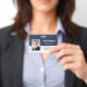Personalisieren Sie diesen individuellen Mitarbeiternamen und das Foto-Abzeichen einfach mit Ihrem Firmenlogo und qr-Code oder Strichcode. Erhältlich mit verschiedenen Hintergrundfarben und Anbaugeräten. Keine Mindestbestellmenge.