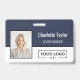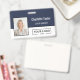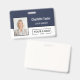 Mit diesem horizontalen Abzeichen-Design geben Sie Ihrem Team einen beruflichen und kohärenten Look. Das gepflegte und raffinierte Layout zeichnet sich durch eine starke horizontale Spaltung aus, die einen dunkelblauen Oberteil von einer knalligen weißen Unterhälfte trennt. Diese moderne Ästhetik bietet die perfekte Leinwand, um neben dem Firmenlogo das Foto und den Namen eines Mitarbeiters für eine scharfe und organisierte Markendarstellung zu präsentieren.