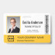 Personalisieren Sie diesen benutzerdefinierten gelben Mitarbeiternamen und das Foto-Abzeichen einfach mit Ihrem Firmenlogo und qr-Code oder Bar-Code. Erhältlich mit verschiedenen Hintergrundfarben und Anbaugeräten. Keine Mindestbestellmenge.