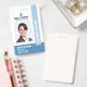 Ein modernes Mitarbeiter-ID-Abzeichen. Das Design beinhaltet Ihr Firmenlogo, Ihren Firmennamen und Ihre Tagelinie. Es zeigt ein großformatiges Mitarbeiter-ID-Foto. Die Informationen können personalisiert sein und beinhalten bis jetzt den Namen des Mitarbeiters, die Abzeichen-ID, das ausgestellte Datum und das Ablaufdatum. Ein Bar auf der rechten Seite zeigt den Beruf des Mitarbeiters in großen, fetten Buchstaben. Diese Bar kann auch verwendet werden, um eine Abteilung zu zeigen, wenn gewünscht.