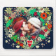 Hübsche, dunkelblaue und beige farbenfrohe Blume mit einem blühenden Herz im Stil der Volkskunst. Fügen Sie ein Bild von Ihnen und Ihrem Partner in den personalize Bereich. Ein süßes romantisches Geschenk für ein Paar zum Valentinstag, Jubiläum oder Weihnachten.