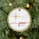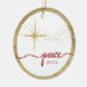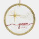 FOTO CHRISTMAS ORNAMENT. "Weihnachts-Script Peace Star Gold Red Glitzer Foto Keramik Ornament". Ein qualitativ hochwertiger Scan von echten Blattgold beiderseits dieses Ornaments. Das einfache Drehbuch "Peace" in Rot Glitzer wurde von Audrey Jeanne Roberts, einem international anerkannten Kalligraphen und Künstler, handgeschrieben und mit einem Haufen goldfarbener, funkelnder Sterne und einem einfachen Stern von Bethlehem in goldenem Glitzer hervorgehoben. Urheberrecht.