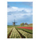 Foto-Druck einer Landschaft mit einer Windmühle und Gelb- und Rottulpen unter einem bewölkten Himmel in der niederländischen Landschaft an einem schönen Frühlingstag in der Bulb Region, Niederlande.