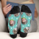 Diese niedlichen, aquamarinen Foto- oder Kindersocken sind mit zwei Fotos ausgestattet - von Haustieren oder Haustieren, Kindern, Kindern oder Familienbildern, in einem Zeilenmuster mit weißen Dreiecken und sind die perfekte Socke, um Ihr Kind, Ihren Mann, Ihre Ehefrau, Ihren Hund, Ihre Katze oder jeden, den Sie Liebe haben, zu zeigen! Das ist das perfekte Geschenk für den Sockenliebhaber und ein tolles Weihnachtsfest-kleine Geschenk!