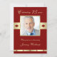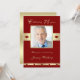 Diese fabelhafte 75. Geburtstagsfeier lädt mit einem Foto des Geburtstagsfeiers als Brennpunkt in einem schönen goldenen Rahmen auf bordeauxrotem Hintergrund zum Verweilen ein. Die Worte "Feiern 75 Jahre" erscheinen über dem Foto. Unter dem Foto sind die Worte "Bitte schließen Sie sich uns an, um zu ehren" und dann der Name des Geburtstagsfeiers. Eine goldene Bar ist unten mit bordeauxfarbenen Diamantformen zu sehen. Die Rückseite der Einladung ist für Ihre sehr wichtigen Details zur Einladung zum 75. Geburtstag reserviert. Copyright henishouseuse paper