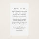 Dieses Gedenkgedicht kann bei einer Feier des Lebens oder einer Beerdigung als Pfand gegeben oder als besondere Hommage an diejenigen geschickt werden, die nicht teilnehmen konnten. Diese Karte kann mit einem beliebten Foto und Ihrer Wahl von Gebet oder Gedicht personalisiert werden. Das Foto dient zur Veranschaulichung und kann in ein eigenes umgewandelt werden.