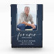 Ein klarer Acrylblock-Andenken-Schrein enthält ein Foto Ihres geliebten Menschen, seinen Namen und Geburts- und Sterbedaten mit 'Für immer in unseren Herzen' in schicker Schrift auf blauem Jeans-Denim-Hintergrund. PASSENDE Artikel in unserer Kollektion.