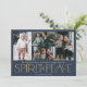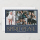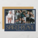 Diese Foto-Grußkarten sind mit dem Gruß "Frohe Weihnachten und ein glückliches neues Jahr" und dem Gruß "Spirit of Peace" in großen goldenen und Elfenbeinbriefen auf mariniertem Hintergrund mit Platzhaltern versehen, um vier Ihrer liebsten Fotos, Familiennamen und das Jahr hinzuzufügen.