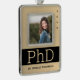 Ein Foto-Doktortitel mit Goldton (ohne Folie) und Schwarz-Farbschema. Es zeigt den Grad, den Namen und das Jahr. Fügen Sie einfach Ihr Foto und Informationen hinzu, fügen Sie dieses Ornament in Ihren Warenkorb, und halten Sie an dieser großen Leistung fest. Foto Gold Schwarzer Name PhD Abschluss Weihnachtsgeschmack | ©Melissa Patton - Designer<i>Fotografie © Storytree Studios, Stanford, CA</i>